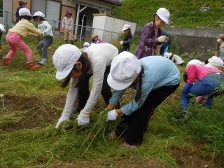 冬に収穫してからそのままにしていたので、雑草畑になっていた畑。自分たちの腰の高さくらいある雑草を力を合わせて抜きました。