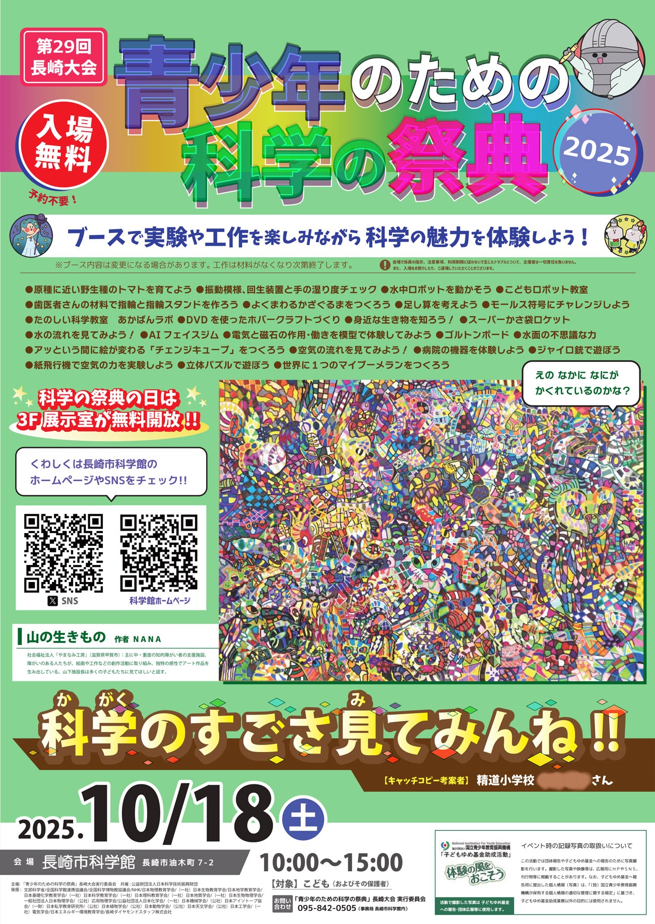 10月18日(土)に行われた、長崎市科学館での青少年のための科学の祭典にて、本校小3児童のキャッチコピー「科学のすごさ見てみんね!」が選ばれました。社会科の授業で長崎の施設紹介ポスターを作った経験を活かし、方言を使うことで、長崎らしさを出す工夫をしたそうです。祭典では、表彰式とテープカットが行われました。当日は大人の方々に囲まれ緊張したそうですが、堂々とした様子で式典に臨んでいました。