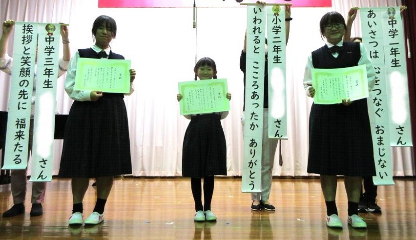 今年度は、あいさつ標語も全校で考え、校内選考のあと、表彰式も行われました。標語を意識しながら、全員ではつらつとしたあいさつをしていきたいと思います。