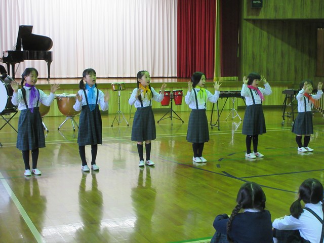 小音会の前日には、6年生主催で小学校の壮行会が行われました。小学3年生による歌と、小学5年生による合奏が披露され、練習の成果がよく伝わる素晴らしい演奏に、大きな拍手がおこりました。