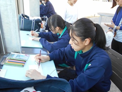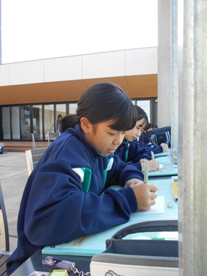 描いた作品は中学校校舎の廊下に展示され、先生方などを審査員として、コンテストが実施されました。短い時間でしたが、写生することを大いに楽しんだ中学生みじょ娘さんたちでした。美術部の皆さん方の活躍ぶりも流石でしたね。