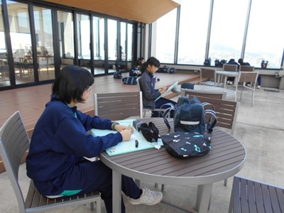 中学校で写生大会 ~長崎市役所19階からの絶景