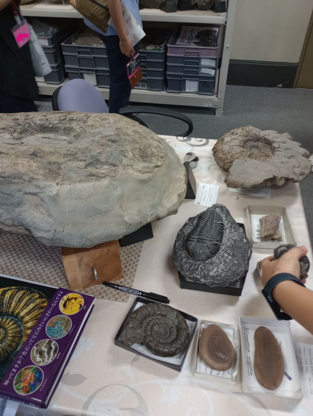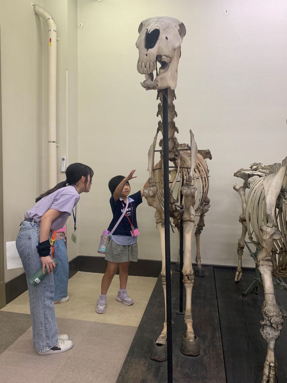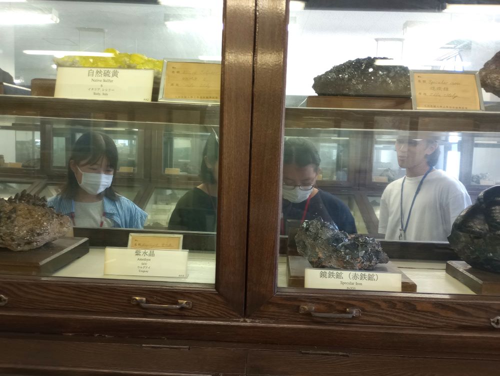 私たちは、大学院生のお兄さんやお姉さんたちの案内のもとグループに分かれて午前中バックヤードツアー、午後はワークショップに参加しました。ウシやウマの骨や綺麗な色の鉱石などこんなに間近で見ることは初めてで、もっと観たい!と思いながら1階から4階まであれやこれや話したりしながら観てまわりました。