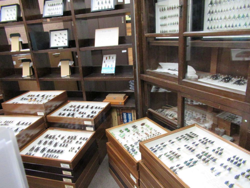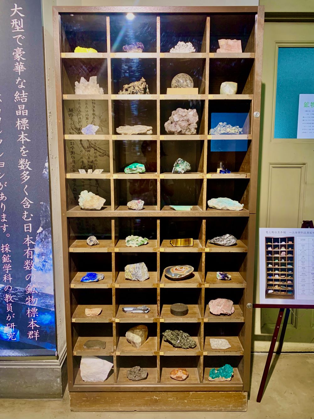 93年前に建てられた旧工学部本館は、国の登録有形文化財として登録された歴史的建築物で、玄関の装飾や壁面などいたるところ、雰囲気のある造りとなっています。そこに博物館が入っており、昆虫や植物、大きなアンモナイトなどの化石、骨格標本、歴史的な道具類など、多様な展示物が各部屋に展示されています。