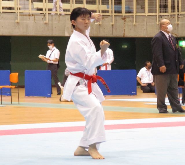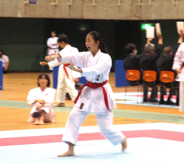 まず、団体形での競技。1年生にとっては初めて尽くしの中総体で、大舞台のプレッシャーに押しつぶされそうになりながらも、「先輩方のために!」という一心で、最後まで堂々と戦い抜きました。3年生の二人にとっては最後となる中総体…熱い思いは並々ならぬものでした。
