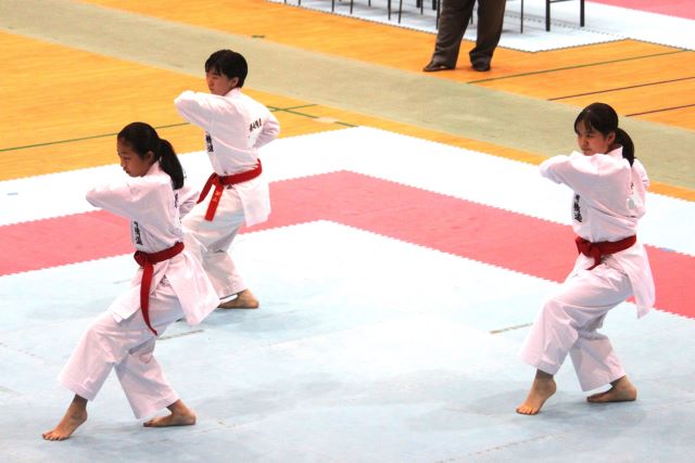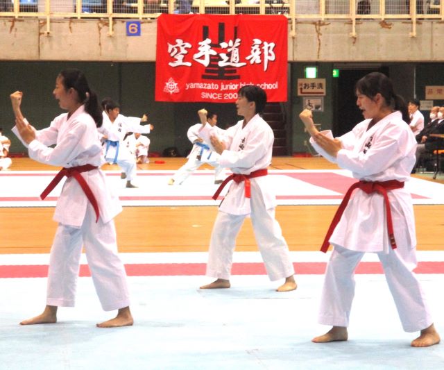 6月18日(日)、長崎市中総体「空手道競技」に出場しました。今年は精道初となる「団体 形(かた)」への出場を果たし、3年生2名、1年生1名の3人で、息の合った形を披露しました。惜しくも入賞とはなりませんでしたが、初めての団体戦出場に感動も一入。大きな拍手が送られました。