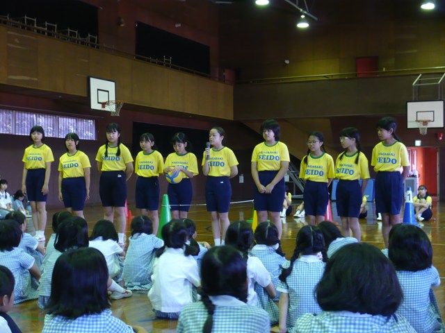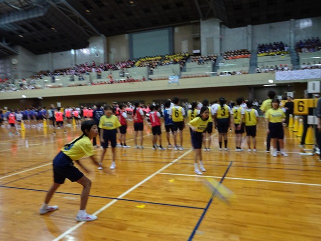 大会前には、6年生を応援する「壮行会」が5年生主催で行われました。6年生がそれぞれの競技のデモンストレーションをしながら、みんなに出場種目を紹介してくれました。
