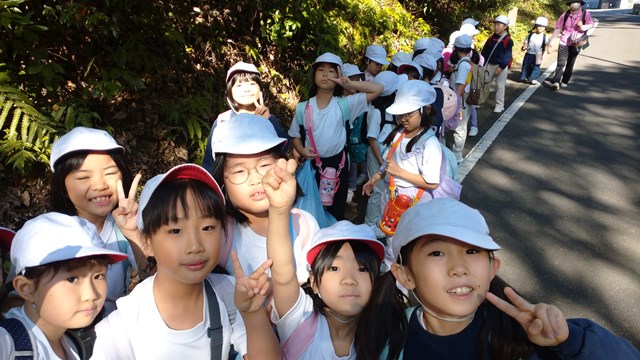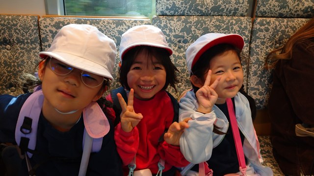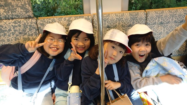 小学校1・2年生が諫早運動公園へ秋の遠足に出かけました。まずはスクールバスで浦上駅へ。JRに乗って、電車からの風景も楽しみながら、浦上駅から諫早駅に向かいました。