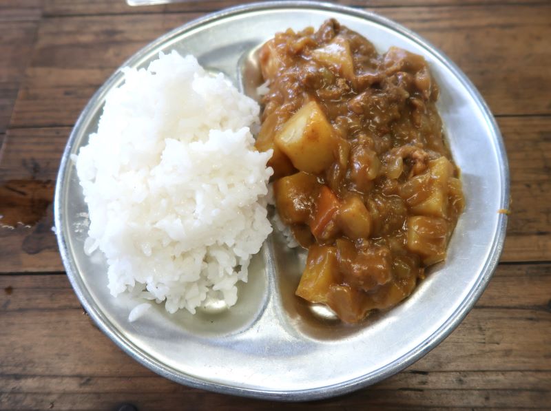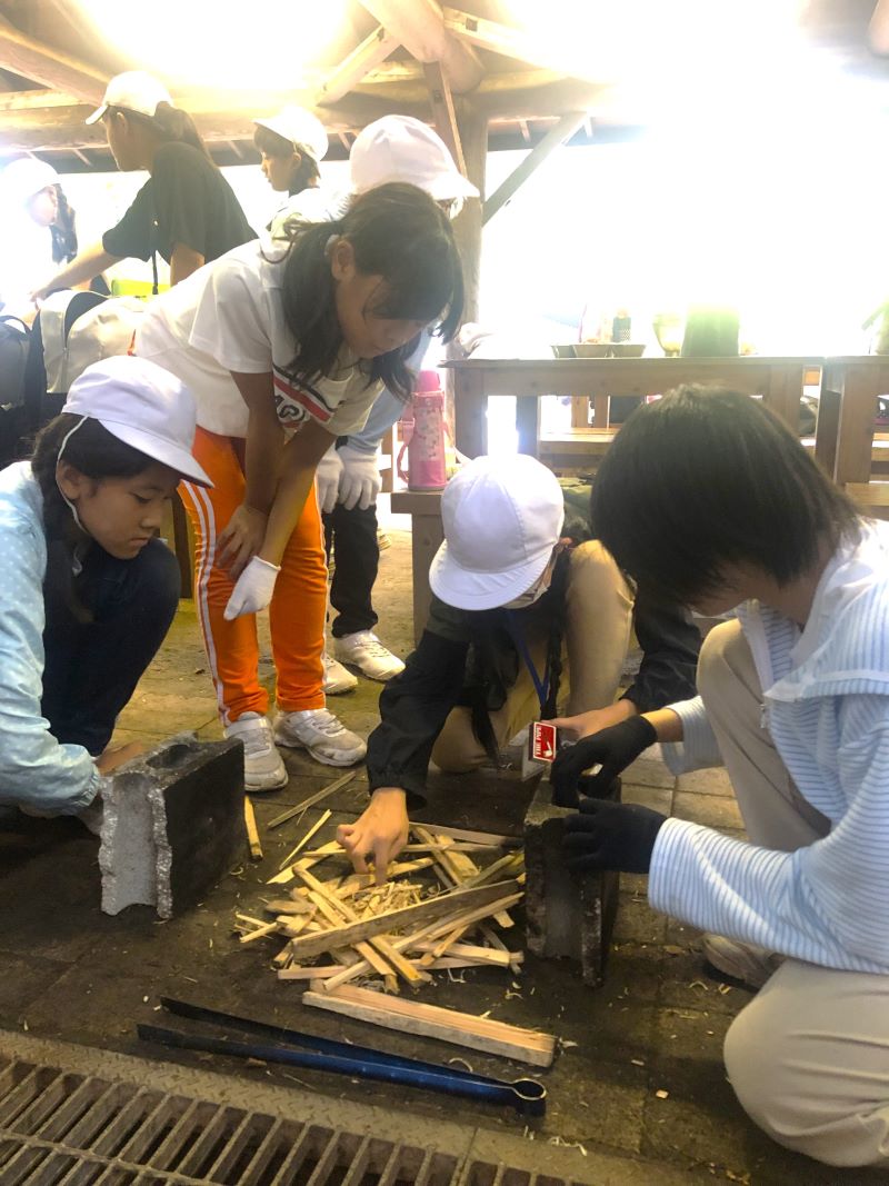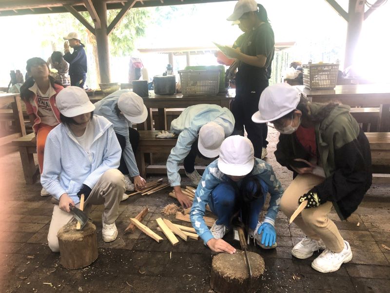 3日目は野外炊飯。ポイントで得た食材を使って、カレーライスを作りました。もちろん、野外炊飯ですから薪割り、火起こしから自分たちで行います。