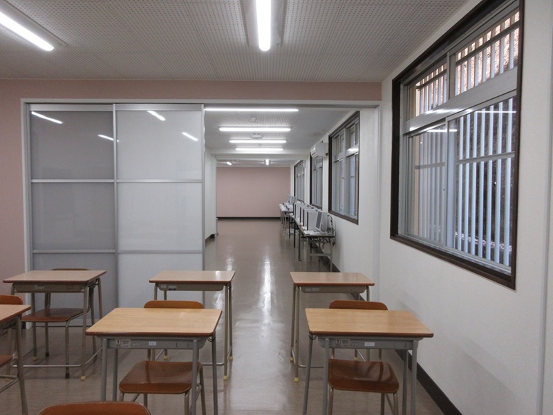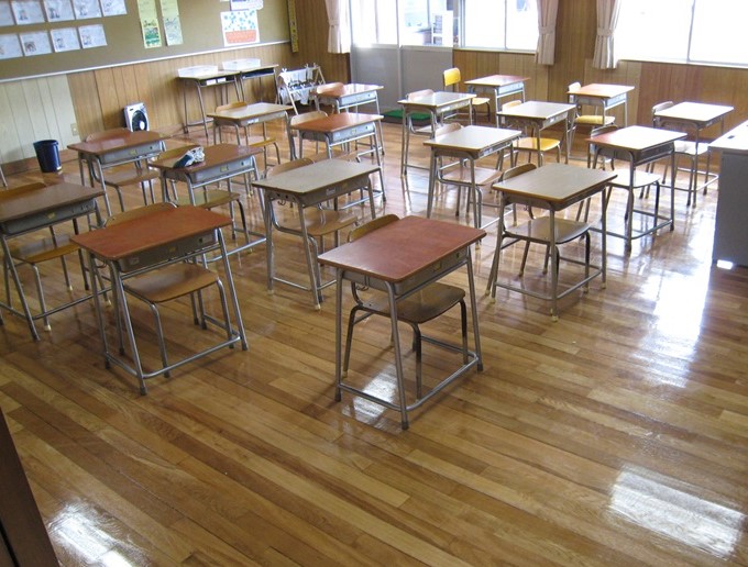 小学校教室の床と廊下側の壁をリニューアル。校舎全体が明るくツヤやかになりました。