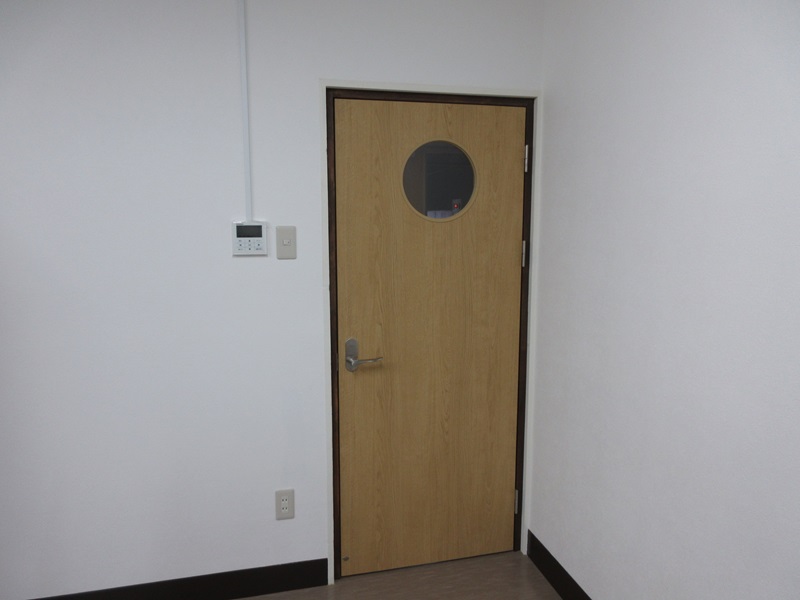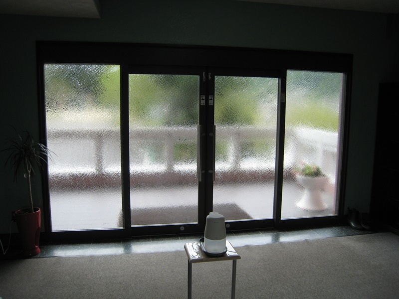 正面玄関ドアと受付窓がワイドになりました!ドアは前のように押さないで横にスライドで楽に開きます。自動で閉まります。きれいな模様ガラスで快適です!